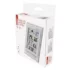 12/24 formát času: áno|anemometer: nie|barometer: nie|budík: áno|časové pásma: áno|dátum: áno|dosah snímača: až 30 m|drôtová sonda k čidlu: nie|elektronické plošné podsvietenie: nie|farebný displej (black mask) podsvietený: nie|fázy mesiaca: áno|hodiny: riadené DCF signálom|kalendár: áno|korekcia nadmorskej výšky: nie|LED podsvietenie displeja: nie|min. a max. teplota: áno|možné ďalšie čidlo: 3 (E05018)|možnosť nastavenia jednotky teploty °C/°F: °C/°F|možnosť zavesenia na stenu: áno|napájanie čidla: 2× 1,5 V AA (nie sú súčasťou balenia)|napájanie stanice: 2× 1,5 V AAA (nie sú súčasťou balenia)|opakované budenie: áno|predajný obal: 1 ks, krabička|predpoveď počasia: áno|prenosová frekvencia: 433 MHz|prevedenie teplomera: bezdrôtové|produkt: metestanica|projekcia: nie|rozmer čidla: 21 × 38 × 100 mm|rozmer hlavnej jednotky: 23 × 76 × 126 mm|sieťový adaptér: nie|teplotná výstraha: nie|trend teploty: áno|trend tlaku: nie|trvalé podsvietenie: nie|veľkosť displeja: 50 × 81 mm|vnútorná teplota: -10 °C až +50 °C, rozlíšenie 0,1 °C|vnútorná vlhkosť: 1 % až 99 % RV, rozlíšenie 1 %|vonkajšia teplota: -40 °C až +60 °C, rozlíšenie 0,1 °C|vonkajšia vlhkosť: 20 % až 95 % RV, rozlíšenie 1 %|zrážkomer: nie
